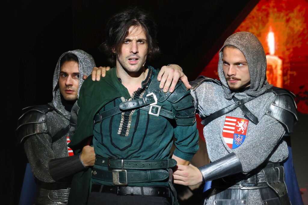Drucker egyébként az egyik legjobb színházi karmester, rögtön az elején belecsap a lecsóba, a kiváló muzsikusokkal együtt, és végig jó ritmusban tartja az előadást. Amúgy is gyors ütemben száguldunk keresztül körülbelül két év, az 1856-58 közötti eseményein. A tévésorozattól a Hunyadiak divatba jöttek. A Juhász Levente, Szente Vajk, Galambos Attila által írt A trón nagyjából ott kezd, ahol a sorozat befejezte. Hunyadi János halálától eljutunk Mátyás megkoronázásáig, felmagasztosulásáig.