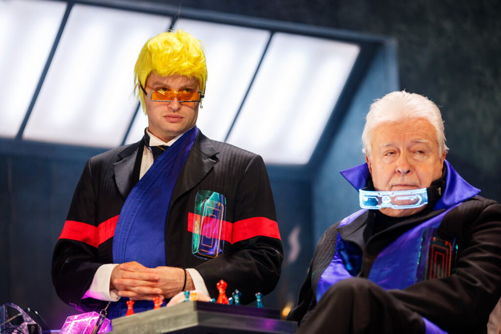 A történet szerint, a nem is olyan távoli jövőben, szappanopera forgatásába csöppenünk, amit már nem emberekkel, hanem androidokkal, ahogy ezúttal nevezik őket, aktoidokkal vesznek fel. A rendező, a Méhes László megformálta Chandler Tate, aki korábban játékfilmeket csinált, és a pálya szélére sodródásként fogja fel, hogy ide jutott. Méhes enervált, gunyoros értelmiségit ad, akinek elege van ebből az iparszerű „favágásból”, valódi művészet helyett annak futószalagon termelt imitációjából. Furtonfurt keserű megjegyzéseket tesz. Epés „fullánkokat” bocsájt a munkatársaiba. Az aktoidokat pedig programot végrehajtó, vezérlőpultról irányítható, a hangerejüket, a gesztikulációjuk mértékét is onnan beállítható, emberi külsővel felruházott eszközöknek tartja. Belesavanyodott már a saját létezésébe is. Waskovics Andrea mint Prim Spring, ül a szürreális vezérlőpultnál, ami a többi díszlettel egyetemben, Pater Sparrow fantáziadús tervezése. Springnek sem jobb egy cseppet sem arról a véleménye, amit művelnek. Szintén rutinból űzi az ipart, és ő ugyancsak megereszt ironikus megjegyzéseket, miközben villámhárítóként is próbál működni. Radnaynak operatőrként kiül minden véleménye az arcára. Kórházas jelenet forog kisebb – nagyobb döccenőkkel.