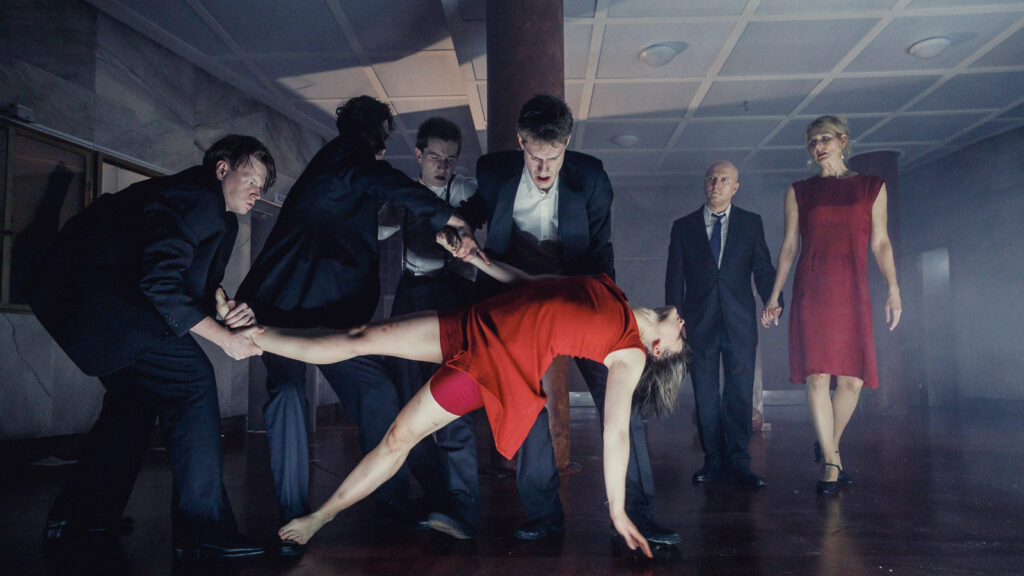 Dermesztően súlyos megrázkódtatás esetén szokták mondani, akár már közhelyesen is, hogy nincsenek rá szavak. A világunk sok tekintetben eljutott már ide. A szereplők nem tudják, nem merik megfogalmazni a gondolataikat. Összezavarodtak attól a káosztól, ami körbe veszi őket. Hangokat hallatnak, hörögnek, szörcsögnek, szipákolnak, sikítanak, hangosan veszik a levegőt, mintha olyan kortárs zeneművet hallanánk, ami zajokból, zörejekből áll, ám a szó, a mondat nem áll össze a szájukban. Amúgy a zenének, amiért Urbán Kristóf a felelős, az erőteljes, olykor fülsiketítő hanghatásoknak, az idegesítően villódzó fények orgiájának, igencsak hangsúlyos szerep jut. Segítenek megteremteni a lidérces, kiismerhetetlen, félelemmel teli közeg lúdbőröztető atmoszféráját.